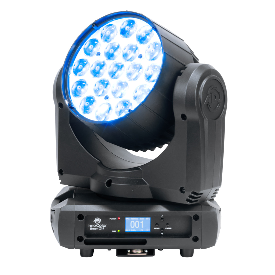 The ADJ Inno Color Beam Z19 is a professional 190W LED Moving Head Beam fixture with motorized zoom allowing for a variable beam angle from 10-60-degrees. The fixture is powered by 19x 10W RGBW Quad Color (4-IN-1) LEDs. With its quick speed and built-in light shows, the Inno Color Beam Z19 brings pure lighting excitement to any venue. The Inno Color Beam Z19 is extremely versatile and has everything clubs, theaters, churches, concert productions and lighting professionals are looking...
