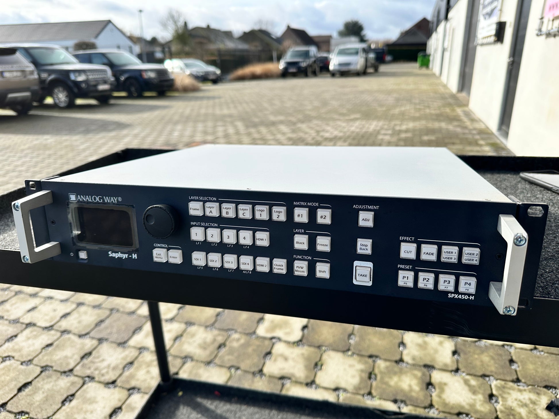 Ten-input hi-resolution mixer and seamless presentation switcher with four HDBaseT™ inputs, two mirrored HDMI / HDBaseT™ outputs, up to 3 live layers and 2 operating modes.