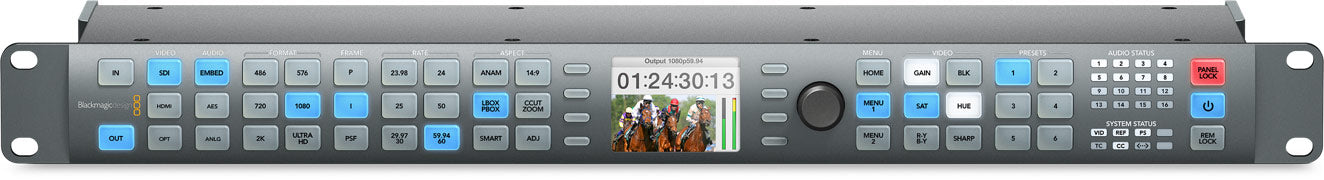 Teranex AV is specifically designed with new features for live events and professional AV installations, as well as broadcast and post production workflows. You get 1,089 up, down, cross and standards conversions for all formats up to 2160p60, along with Teranex’s patented algorithms and legendary image quality. Teranex AV offers low latency, and features a still store for adding logos and graphics, a live freeze frame and can generate a reference signal. You get professional 12G-SDI and quad SDI connections which can be used simultaneously, consumer HiFi, XLR audio, HDMI in, loop and outputs, and more! There are even metal brackets at the rear to prevent cables and connections from getting damaged when installed in tight locations!